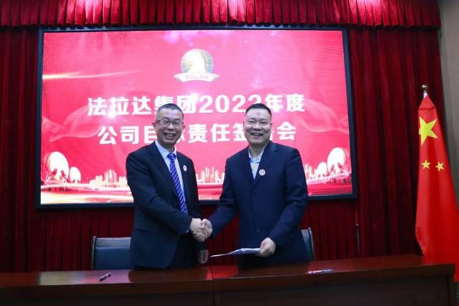 在法拉达集团2022目标责任签署会上,张董事长与公司管理层签订了目标责任书并表示法拉达集团站在新的历史起点上,各级管理干部要紧跟集团“二、五、一零”发展战略规划,勇毅前行,凝聚奋斗的力量,勠力同心,和衷共济,开创法拉达发展新格局!