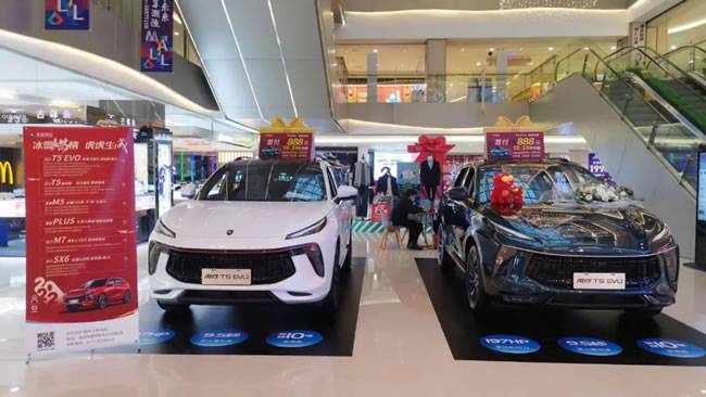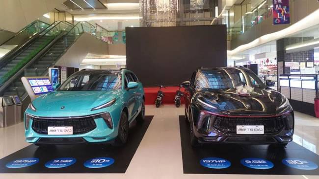 标配瑞立产品的东风柳汽系列乘用车正在瑞立外滩生活广场展出