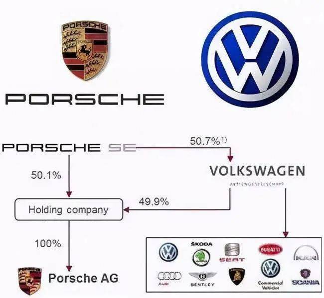 保时捷家族通过保时捷控股成为大众汽车的小股东,《德国商法典》原本规定,当股东持有者的股份达到75%时,即可以获得一家德国公司的控制权。但是针对德国大众这一国有企业,原本还有专门的法律《大众法》,这一法律要求股东需要持有股份超过80%的时候,才可以实现对大众集团的控制,而大众所在联邦州萨克森州政府持有大众20.1%的股权,保时捷控股31%。80%的控制红线使得大众集团的控制权不大可能落在其他人的手上。但在2007年的时候,保时捷家族则通过欧盟最高法院推翻了这一法律的限制,2009年的时候,保时捷家族大举借债买入市场上的大众股份,最高时保时捷总共持有74.1%大众的股份,但始终没有实现75%的控股目标并背上了巨额债务。最后,保时捷控股把对大众的收购变成了合并,以大众集团买下49.9%的保时捷汽车的股份终结了这一纷争。