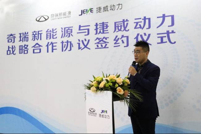 签约仪式上,捷威动力与奇瑞新能源就创新发展及深度合作等方面进行深入探讨和交流。
