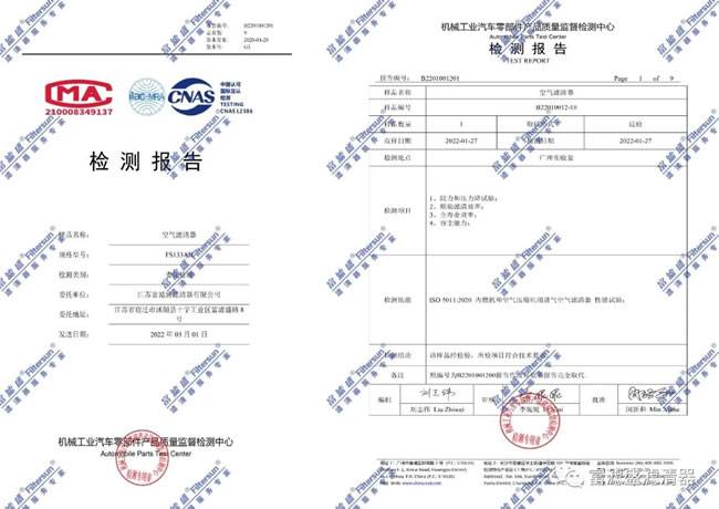 为进一步验证富滤盛滤清器的产品质量,富滤盛在自有实验室的情况下,委托第三方权威机构对富滤盛空气滤芯的核心指标:初始阻力、压力降、原始滤清效率、全寿命效率、容尘能力进行了严格检测。经检测,各项指标数据良好,符合各相关检验依据要求和标准。再次验证了富滤盛滤清器过硬的高品质滤清器,性能卓越!