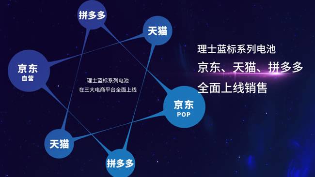 在这一背景下,理士蓝标系列电池以加速线上化推广、全面建设线上线下服务体系为发力的主要方向,拓宽电商渠道成为新的增长点。全面入驻京东、天猫、拼多多三大电商平台,是对各平台属性与资源的互补整合,更是从多维度、多方面更为精准化地人货匹配,实现最大化的全域覆盖。