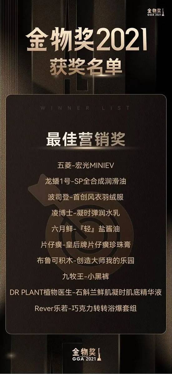 去年12月份,由吴晓波频道、890新商学、新匠人新国货促进会联合发起的新国货创新大赛“金物奖”正式揭晓了榜单,龙蟠1号全系产品凭借广为人知的品牌影响力成功斩获金物奖最佳营销奖,成为润滑油行业唯一入选品牌。