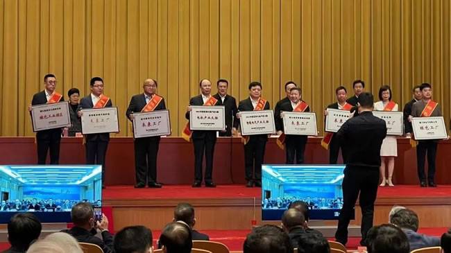 浙江省委副书记、省长王浩为瑞立授牌。集团董事长张晓平作为先进单位代表参会并上台接受奖牌。