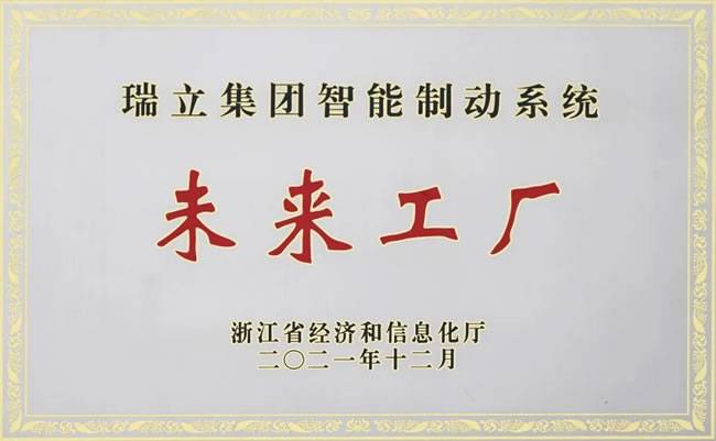 浙江省制造业高质量发展大会4月19日上午在杭州召开。省委书记袁家军出席会议并作重要讲话。省委副书记、省长王浩主持。省领导黄建发、陈金彪、陈奕君、李学忠、卢山、陈铁雄在主会场出席。本次大会对2021年度制造业高质量发展7类12项1253家先进单位进行授牌颁证。其中,“瑞立集团智能制动系统未来工厂”入选浙江省“未来工厂”,瑞立入选国家“绿色工厂”。