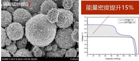 磷酸锰铁锂是一种天然矿物或者人工合成的锂电池正极材料,兼具磷酸铁锂和磷酸锰锂优点,同时,具有更高的电压平台,使其理论能量密度较同样条件的磷酸铁锂要高15-20%。常州锂源所开发的磷酸锰铁锂产品,具有稳定的高电压平台和理想的放电容量,可为电池提供更长的续航和生命周期。