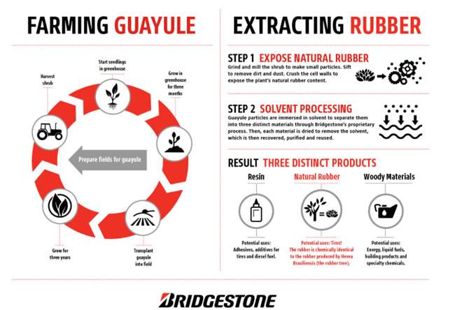 普利司通认为,银胶菊橡胶有望产生持久的经济影响力,并有利于减少运输进口橡胶时产生的能源和其他环境影响。该公司于2012年启动了银胶菊研究计划,并在亚利桑那州梅萨市(Mesa)创办银胶菊加工和研究中心。时至今日,除了梅萨的研究中心,该公司在亚利桑那州的埃洛伊(Eloy)还种有281英亩的银胶菊农场。在银胶菊商业化方面,普利司通已经投入了1亿多美元,并取得了一些里程碑式的成就。例如,2015年生产出首款由银胶菊衍生天然橡胶制成的轮胎,并继续扩大银胶菊分子育种计划。