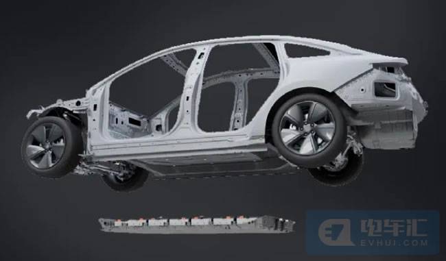 按照零跑汽车的说法,是将承载式车身结构重新做了分布,将车辆底部电池包高度提升,从原先外挂电池布局进而整合至底盘内部,让电池骨架结构和底盘骨架结构合二为一,借用底盘基本结构,利用车身纵梁、横梁形成完整的结构。