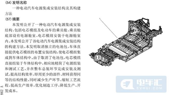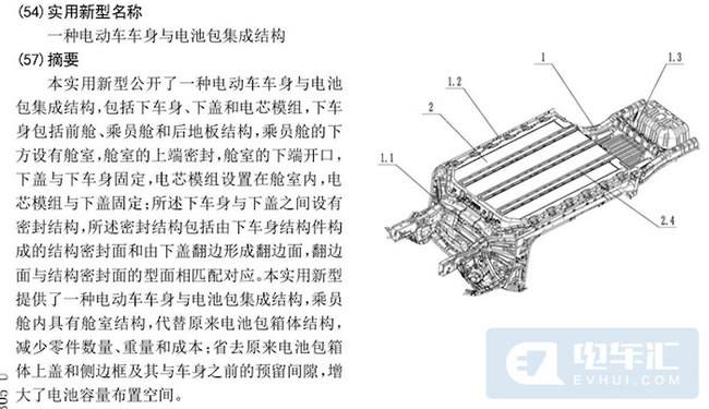 专利中的描述是:本发明取消了电池包,电芯模组直接组装于车体结构中,用更少的部件、材料获得同等的结构性能,从而提高结构效率。