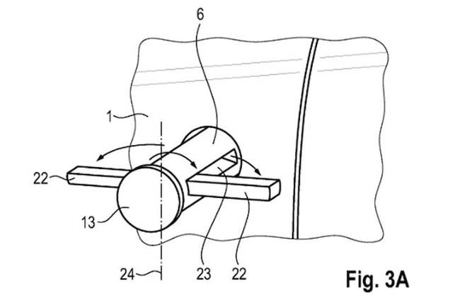 专利中,该车把手在非使用时会沉入门内,使用时会向外突出。当向外移动时,两个杆状握把元件会从侧面弹起,允许用户旋转手柄。