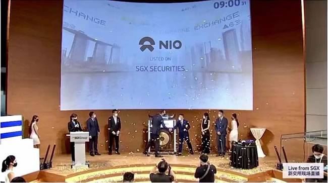 5月20日,蔚来汽车在新加坡交易所敲钟上市,至此,蔚来成为了全球首个完成美国、中国香港、新加坡三地上市的中国企业。