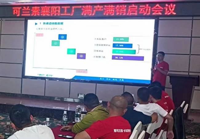 会议过程中,湖北营销团队管理骨干们围绕湖北工厂满产满销营销策略进行了多层次的剖析。湖北可兰素总经理分析了湖北各渠道开发情况,并对如何达成湖北工厂满产满销目标进行了全面系统的布局规划;可兰素湖北销售主管以“聚焦抢滩,聚势创赢”为主题,围绕加油站渠道开发,对加油站的市场情况、加油站合作的必要性、营销推广策略等方面进行解析;湖北工厂项目部营销总监以“天罗地网自营销”主题,阐述了可兰素市场操作思路,分享了经典快消品“四到”理论。各位领导深入浅出、生动详实的汇报讲解,充分展示了可兰素营销团队专业的技能水平与坚实的营销作战基础。