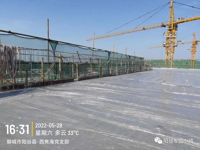 2022年5月28日,山东省重大项目——中汽联(阳谷)车品智能制造生产基地一期厂房工地热火朝天,建筑工人顶烈日冒高温奋斗着,随着A10号楼屋面的混凝土浇灌完成,该项目内的首个单位工程的主体结构正式结顶了。6月份,A1、C5、C3等11幢现代厂房陆续主体结构结顶,标志着中国(阳谷)车品小镇厂房建设取得了阶段性的成果。