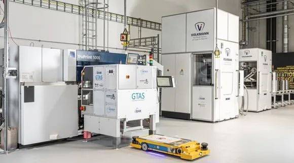 全自动无人驾驶运输系统始于2019年提出的概念。用于在IDAM生产线模块之间运送移动 增材制造构建室。进一步的自动化将处理过的金属粉末运送到工作站进行制备,而增材制造组件的后处理则在专门设计的工作站自动进行。这些机器由一个中央控制单元进行协调,来自各个生产线模块的所有生产数据都在其中汇集,确保了生产力和质量。