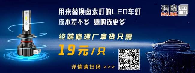 先来看看码隆LED打出的终端修理厂拿货价:19元一只。怎么回事?比卤素灯价格还低?空间利润太有想象力了吧?不仅对手卤素灯震惊了,经销商、车主都懵了,怎么会有这么便宜的LED车灯?下面就来详细看看——