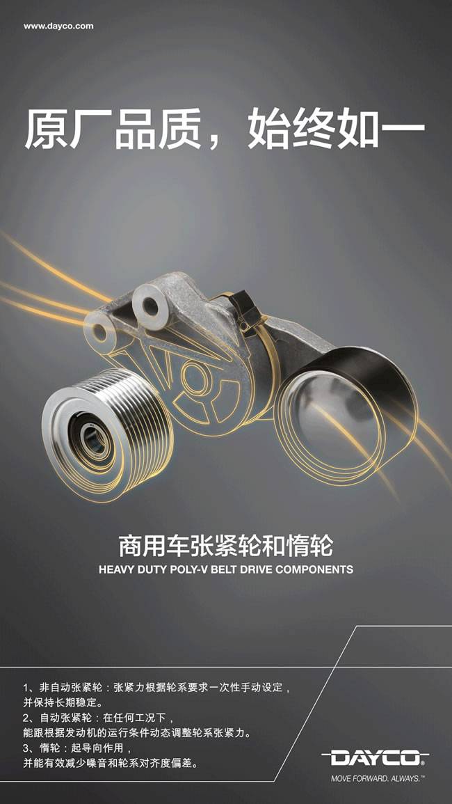 岱高商用车张紧轮和惰轮质量优良,经久耐用,专为附件皮带系统而设计。岱高同时向售后市场客户提供原厂同品质的张紧轮和惰轮,型号齐全,产品质量和售后服务有保证。