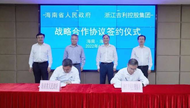 6月8日,海南省人民政府与吉利控股集团在海口签署战略合作协议。吉利控股集团将发挥在科技、人才、资源等方面的优势,与海南展开新能源汽车产业、科技融合新产业、教育产业领域的合作。