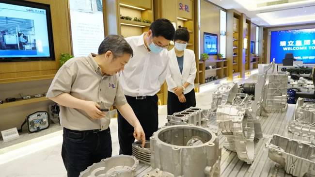 张建明书记一行参观了瑞立国家级企业技术中心、产品展示厅,听取了张晓平董事长汇报企业生产经营、创新发展、汽车零部件智造项目进展等情况,听取瑞立集团纪委书记冯乾存汇报“清廉瑞立”建设工作。