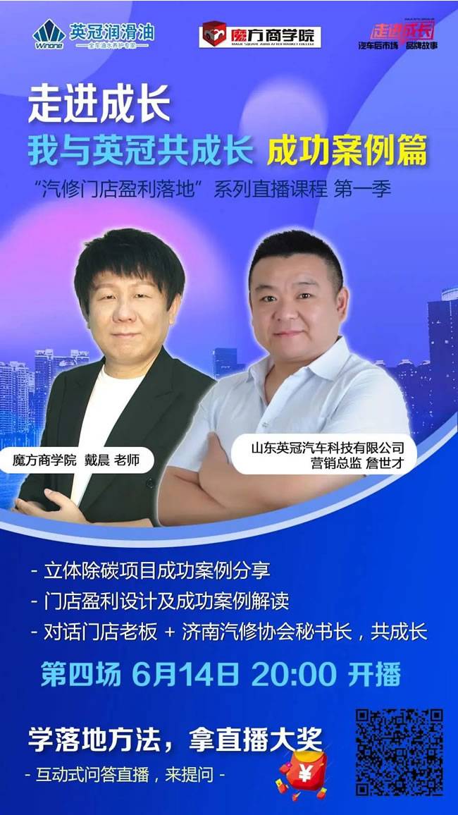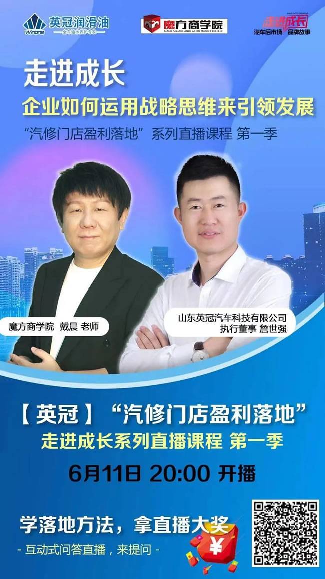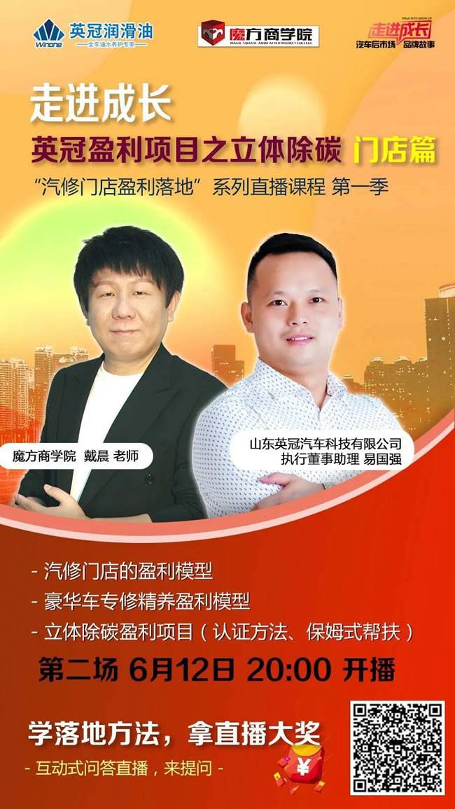 魔方商学院院长戴晨对话山东英冠高层直播已经进入倒计时,“汽修门店盈利落地”系列课,连续四天不间断直播,与汽后行业大咖交流市场盈利新项目、新产品、新模式,展望汽修行业破局之路,教您如何在疫情之下打好组合拳,助力汽修门店复元崛起!