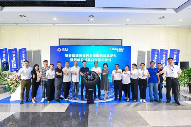 6月16日,新康众与赛轮集团战略合作签约暨液体黄金乘用胎新品发布仪式在赛轮集团总部隆重举行。赛轮集团董事长袁仲雪、副董事长刘燕华、轮值总裁王建业,新康众COO李逸、轮胎事业部总监索文军、市场及品类规划部总监张健出席,新康众旗下天猫养车门店代表、媒体代表等受邀参加。