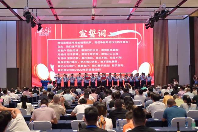 2022年是理士电池拼搏冲刺的一年,面对当前市场环境和社会形势,在客户代表的上台反馈和到场客户的亲临诚意面前,理士国际广东销售公司总经理廖智高先生和深圳销售公司总经理刘群娇女士带领全体业务团队上台宣誓,用承诺促行动,誓战2022年的销售业绩。