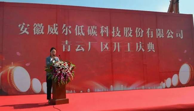 合肥经济技术开发区管委会副主任刘岸女士随后上台致辞,对威尔的发展和青云厂区项目给予了肯定和希冀,合肥经开区也将持续关注威尔青云厂区项目,希望项目如期完工,祝威尔青云厂区开工大吉,生意红火!