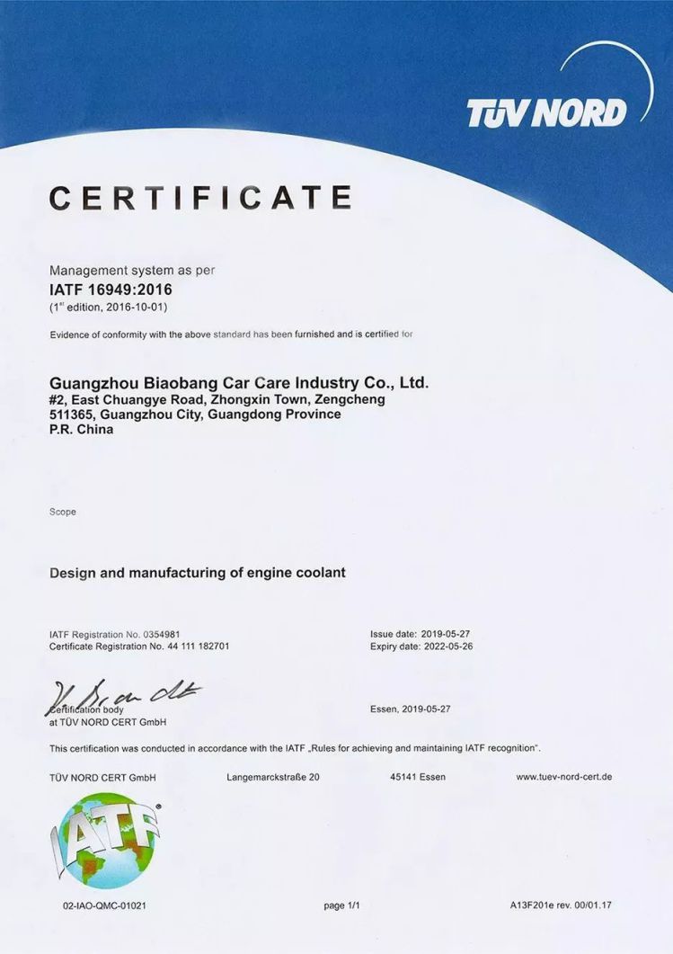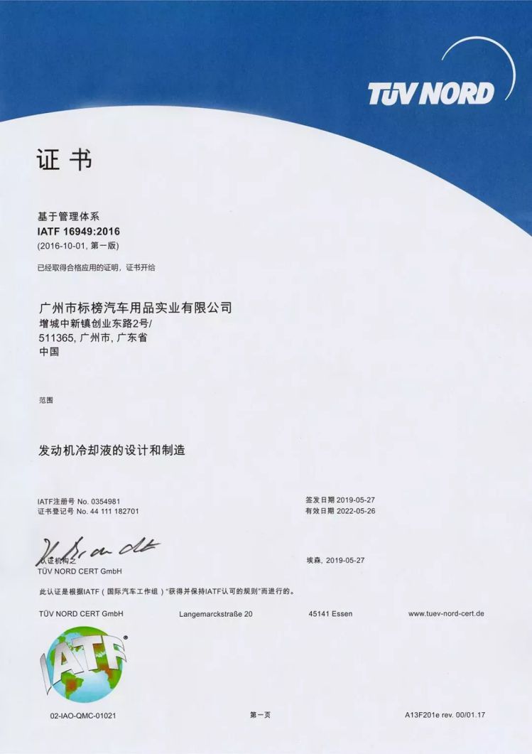 近日,经过IATF国际汽车工作组的严格审定,广州市标榜汽车用品实业有限公司正式通过IATF16949认证,并收到了IATF16949:2016质量管理体系认证证书。