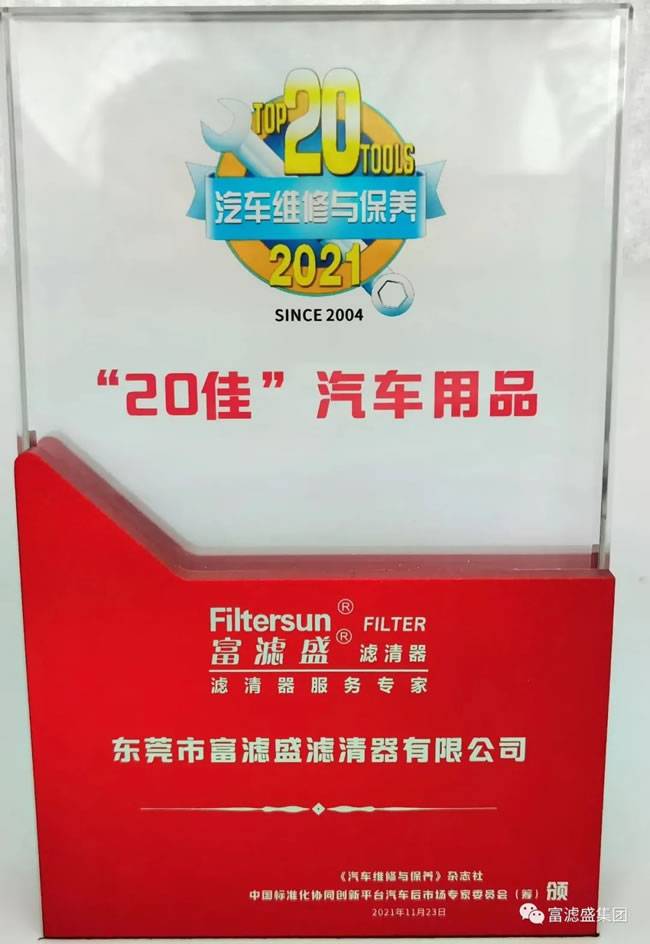 富滤盛滤清器董事长应邀出席了本次会议,并领取了富滤盛-2021汽车维修与保养“20佳”汽车用品奖杯。