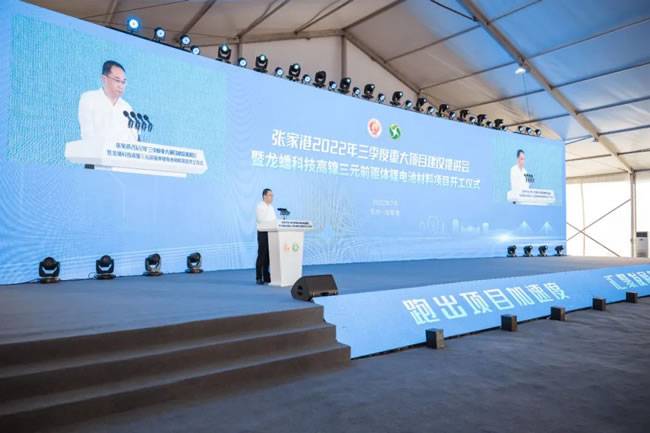 7月28日上午,张家港2022年三季度重大项目建设推进会暨龙蟠科技高镍三元前驱体锂电池材料项目开工仪式举行。本次开工仪式由张家港市政府、张家港保税区、龙蟠科技联合举办,旨在重点推进包括龙蟠科技高镍三元前驱体锂电池材料项目在内的49个项目加快建设。张家港市市委书记韩卫、市委副书记、市长蔡剑峰、市委副书记、政法委书记邵军民、江苏龙蟠科技股份有限公司董事长石俊峰等参加活动。