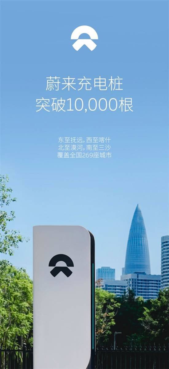 7月29日,随着蔚来深圳曙光科技大厦超充站投入运营,全国蔚来充电桩总数已突破10,000根,覆盖269座城市。