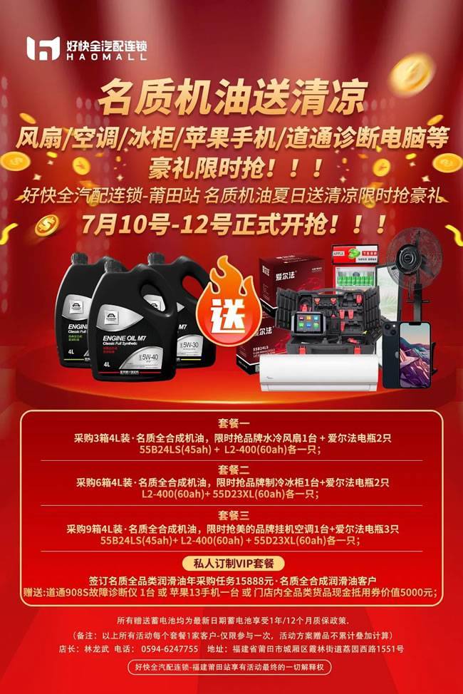 好快全华南大区经理卓波波、润滑油项目经理刘东平与林总一起细致的规划了开业活动,以好快全的拳头产品“名质润滑油”为主的营销方案。方案确定后,大家立即展开行动。三人一组顶着40℃的高温,完成了对莆田店经营区域内的所有四条路线的修理厂拜访工作。收款现金达13万多,把林总首批定的名质全部卖空。从林总加盟→开业地推→货品售罄,仅仅用了不到两个月的时间,连好快全汽配的门招都没来得及做,就卖开了!