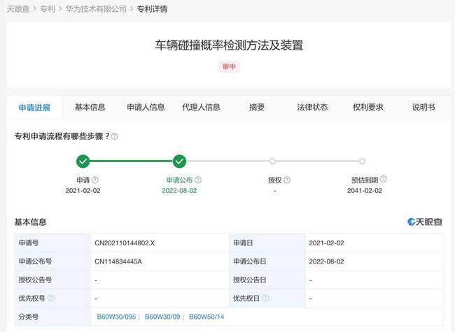 8月2日,据天眼查显示,华为技术有限公司的一项名为“车辆碰撞概率检测方法及装置” 的专利公布,该专利将应用于自动驾驶、智能驾驶或者无人驾驶领域,该技术能够提高车辆碰撞概率检测的准确性。