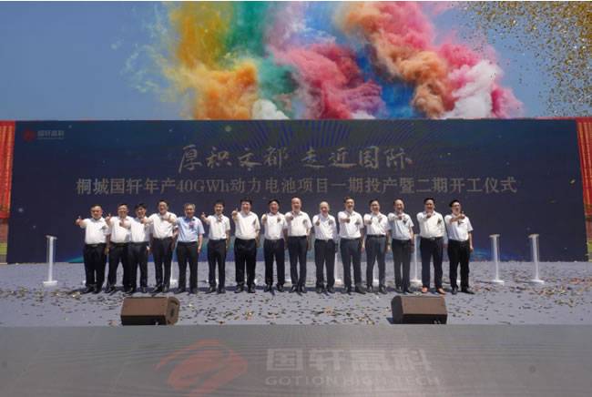 8月8日上午,随着安庆市委书记张祥安的一声宣布,桐城国轩新能源有限公司(简称“桐城国轩”)年产40GWh项目一期正式投产,该项目二期同步开工。安庆市委副书记、市长张君毅,桐城市委书记章周中,国轩高科董事长李缜出席活动并分别致辞。