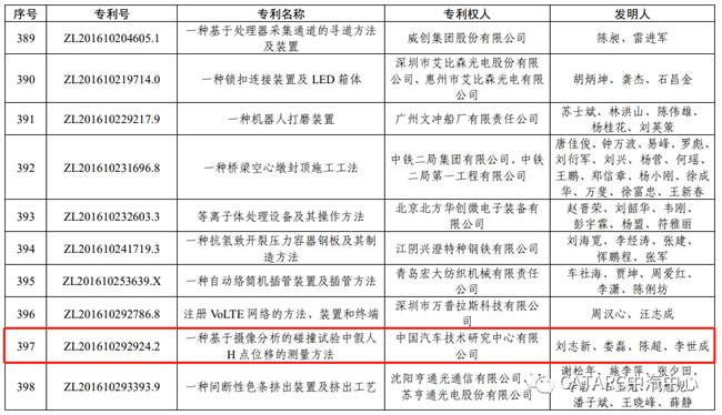近日,国家知识产权局正式公布“第二十三届中国专利奖”获奖名单,中汽中心“一种基于摄像分析的碰撞试验中假人H点位移的测量方法”发明专利荣获中国专利优秀奖。