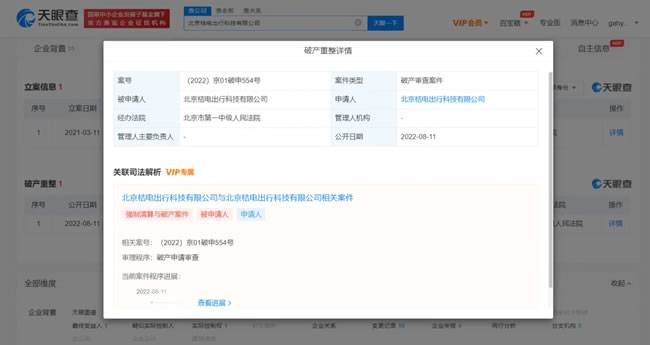 8月12日,据中国汽车报报道,根据向北京市第一中级人民法院提交的法院文件,滴滴全球和理想汽车的一家名为北京桔电出行科技的合资企业已申请破产保护。