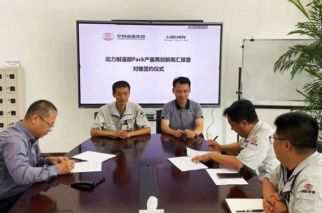 日前,力神电池和动力电池产品制造PACK部门对赌签约仪式顺利召开。公司党委副书记、副总经理王战,总经理助理杨成林,运营管理部代表,人力资源部代表,动力电池产品制造团队代表参加会议。