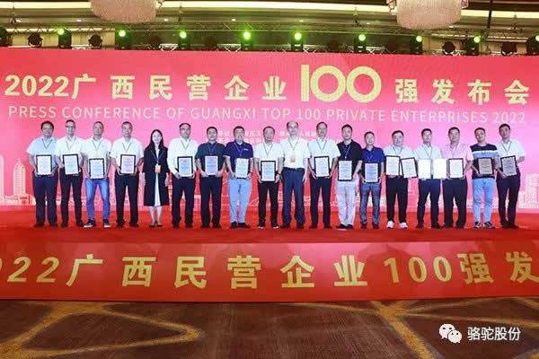 近日,“2022广西民营企业100强”发布会在柳州召开。会上,广西工商联发布了“2022广西民营企业100强”“2022广西民营企业制造业100强”“2022广西民营企业纳税10强”“2022广西最具竞争力民营企业”“2022广西最具潜力民营企业”等榜单。