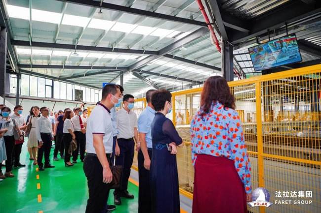 领导嘉宾一行随后参观了法拉达新能源自动化生产线。法拉达集团相关负责人介绍了法拉达智能低碳热管理系统以及自动化生产线的生产流程。领导嘉宾在参观完法拉达自动化生产现场后,对法拉达自动化产线以及在新能源汽车产业所做出的贡献给予了高度的肯定。