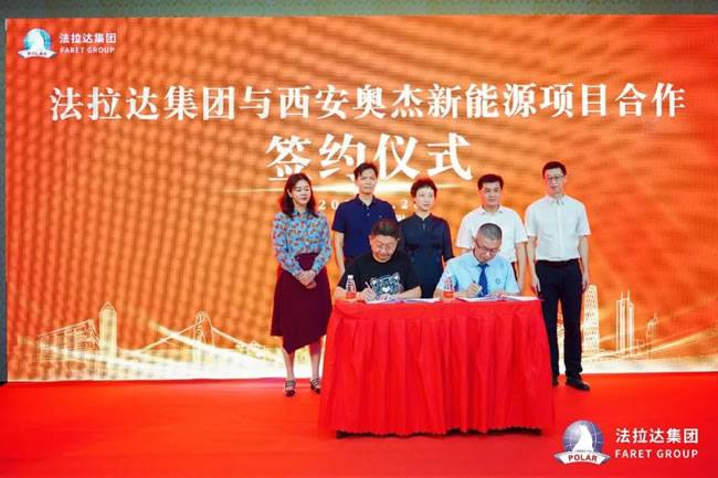 法拉达集团将在新能源主机配套项目上加大投入,并与西安奥杰电热设备工程有限责任公司签订新能源合作项目,双方将共同为推动新能源热管理事业发展贡献力量!