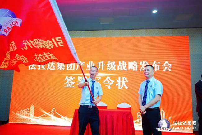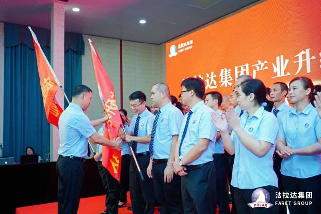 法拉达集团产业升级战略的落地,离不开每一位法拉达人的奋斗与拼搏!现场举行了隆重的授旗仪式,授旗,授予的是责任与担当!张建发董事长把法拉达战略大旗授予何耀星总经理!由何耀星总经理扛起法拉达战略大旗,带领五大战队勇敢出发!主持人喊出法拉达集团产业升级战略:聚焦汽车热管理领域,以产业升级为目标,以市场为导向,技术与营销双引擎驱动,稳固、深耕传统燃油车后市场,全力进军新能源汽车、储能等新兴产业,成为全球热管理领域的一流企业!