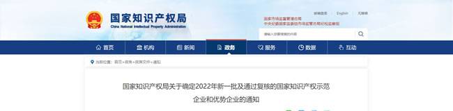 近日,国家知识产权局正式公布2022年新一批国家知识产权示范企业名单(国知发运函字〔2022〕160号),回天新材荣登榜单,成功晋级中国企业知识产权实力第一梯队!