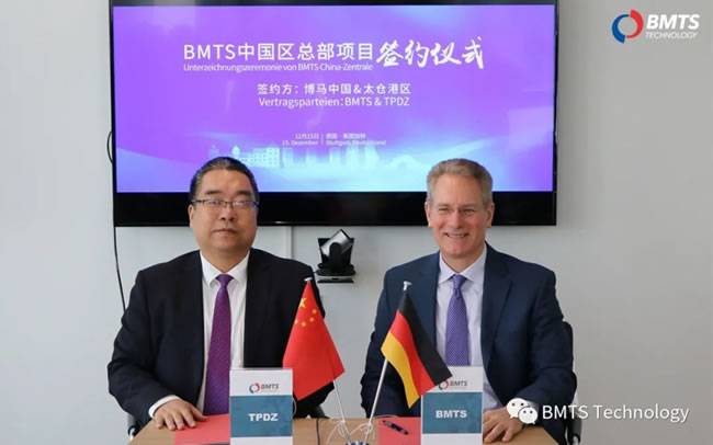 值得一提的是,2022年12月15日,太仓市常委戚振宇率港区招商团远赴德国斯图加特,与BMTS首席执行官Mark Wehner及BMTS管理层进行会晤。双方在BMTS全球创新中心举行了正式签约仪式,并就产业前景及未来合作进行了深入的探讨。