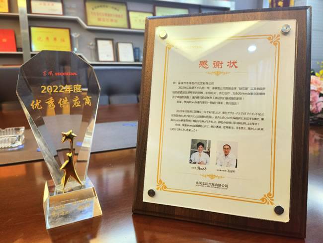 2023年1月7日,东风本田召开供应商表彰大会,授予武汉富诚2022年度优秀供应商奖项。