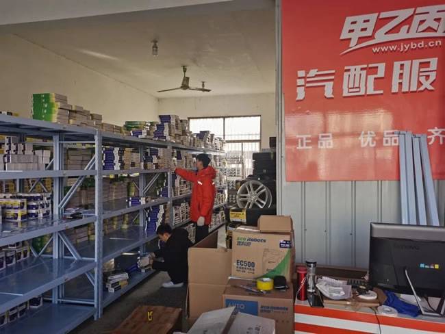 1月3日新年上班第一天,甲乙丙丁上架团队4名小伙伴来到了山东菏泽牡丹区,与牡丹服务站店长一起接收了来自省仓统一配发的机油滤、空气滤、空调滤、刹车片、火花塞、点火线圈、LED灯泡、电瓶、汽机油、防冻液等一系列的商品。