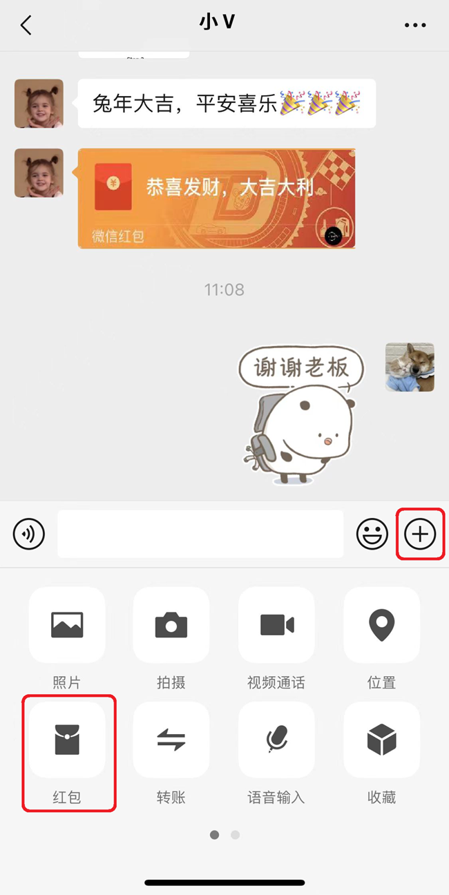 点击【+】,选择【红包】