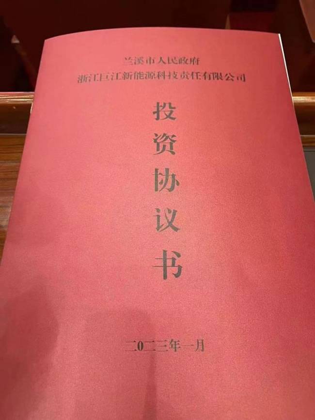 会议上,浙江巨江新能源科技有限责任公司总裁林毅与兰溪市政府代表签署了5万吨/年新能源汽车废旧动力蓄电池回收再利用及70万套/年新能源电池生产项目。巨江公司践行“双碳”目标,开发储能电池、驻车锂电池、电动自行车锂电池、锂电池回收项目,走出了一条绿色低碳高质量鏖战之路。