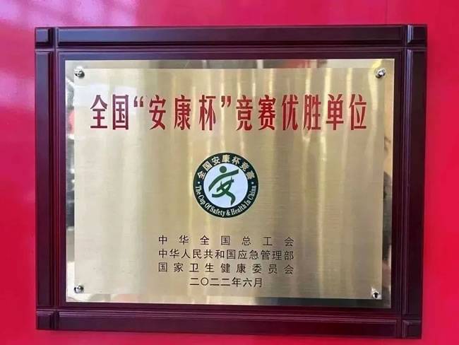 “安康杯”是由中华全国总工会、应急管理部、国家卫生健康委员会发起的全国安全生产和职业健康最高荣誉奖项,全国“安康杯”每两年评比一次,是将竞赛机制、奖励机制、激励机制应用于安全生产活动中的群众性“安全”与“健康”竞赛,是安全生产领域授予的最高荣誉之一。