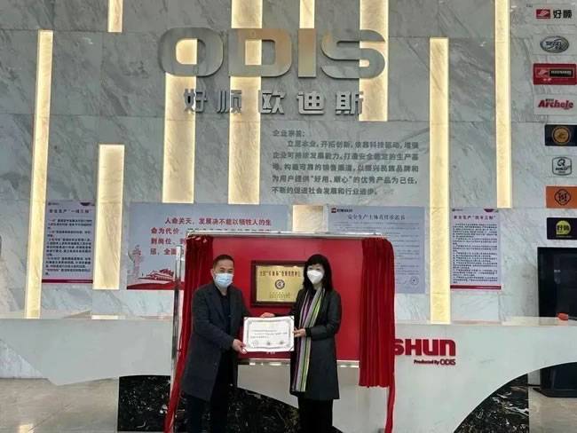肇庆高新区“两新”组织党工委书记、总工会主席高秀为好顺科技颁发证书