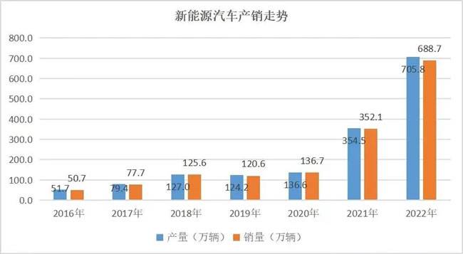 数据显示,2022年,新能源汽车保持高速增长,全年累计销售688.7万辆,同比增长93.4%。截至2022年底,全国新能源汽车保有量达1310万辆,较上年增长67.13%。