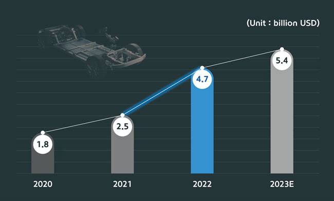 业务层面,现代摩比斯希望2023年,除现代汽车和起亚汽车外,该公司能从其它全球汽车制造商处获得53.6亿美元的订单。2022年,该公司从海外车企获得了46.5亿美元的订单。